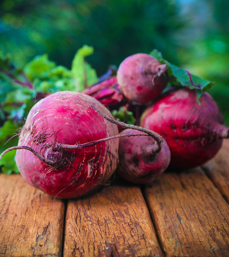 I’m a brightly coloured root vegetable, sweet to eat and full of nutrients. I’m especially high in folate (B9), meaning I’m good for the blood. I’m also full of fibre, great to improve digestion. My leaves can also be eaten, which are rich in iron and vitamin C. In addition, research has showed that drinking beetroot juice has proven effects on lowering blood pressure